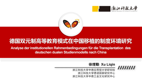 浙江科技大学德语国家研究中心主任、中德工业文化研究中心执行主任徐理勤研究员在“中德双元制高等教育模式”分论坛做题为“德国双元制高等教育模式在中国移植的制度环境研究”的学术报告。报告分为四个部分。