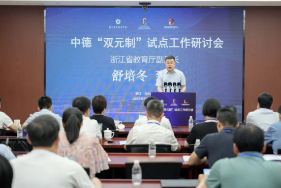 7月5日,浙江省中德“双元制”试点工作研讨会在杭州职业技术学院成功举办。本次活动由浙江省教育厅主办,杭州职业技术学院和浙江省中外合作办学研究中心承办、浙江科技大学德语国家研究中心协办。